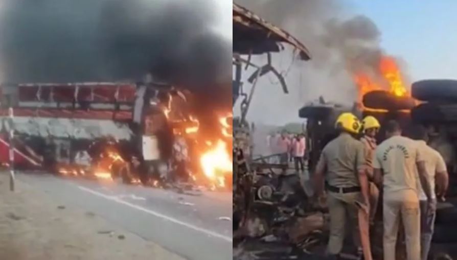 आंध्र प्रदेश में भीषण हादसा: बस और ट्रक की टक्कर के बाद लगी आग, 14 यात्री जिंदा जले, दर्जन भर घायल