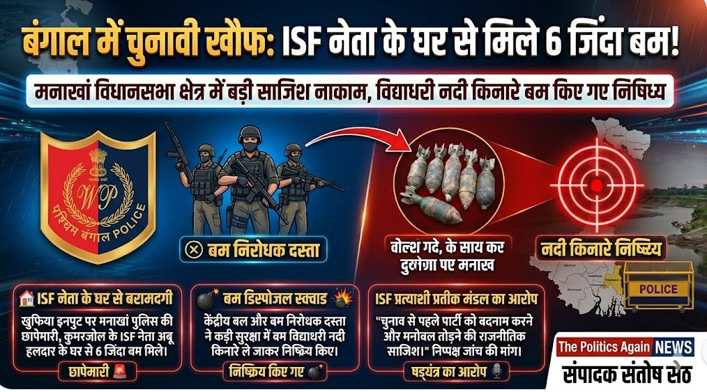 बंगाल में चुनावी खौफ: मिनाखां में ISF नेता के घर से 6 जिंदा बम बरामद, बड़ी साजिश नाकाम “