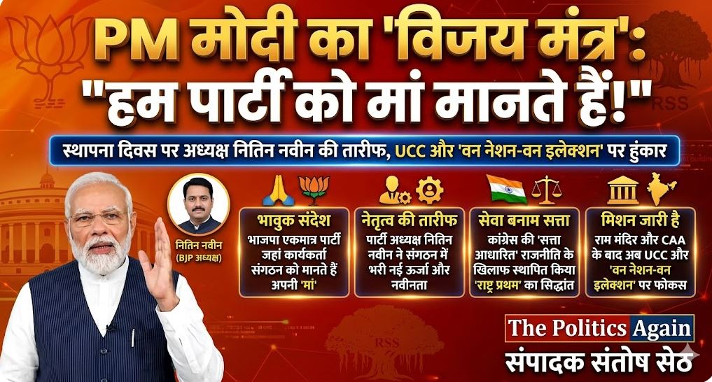 BJP स्थापना दिवस पर PM मोदी का बड़ा संदेश: ‘पार्टी हमारी मां’, अध्यक्ष नितिन नवीन की तारीफ और UCC पर हुंकार “