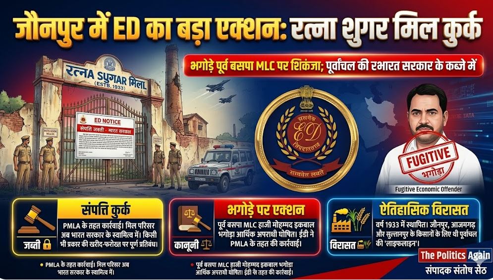 उत्तर प्रदेश के जौनपुर जिले के शाहगंज में प्रवर्तन निदेशालय (ED) ने एक बड़ी कार्रवाई करते हुए पूर्वांचल की औद्योगिक विरासत रही ऐतिहासिक ‘रत्ना शुगर मिल’ (Ratna Sugar Mill) को कुर्क कर लिया है।