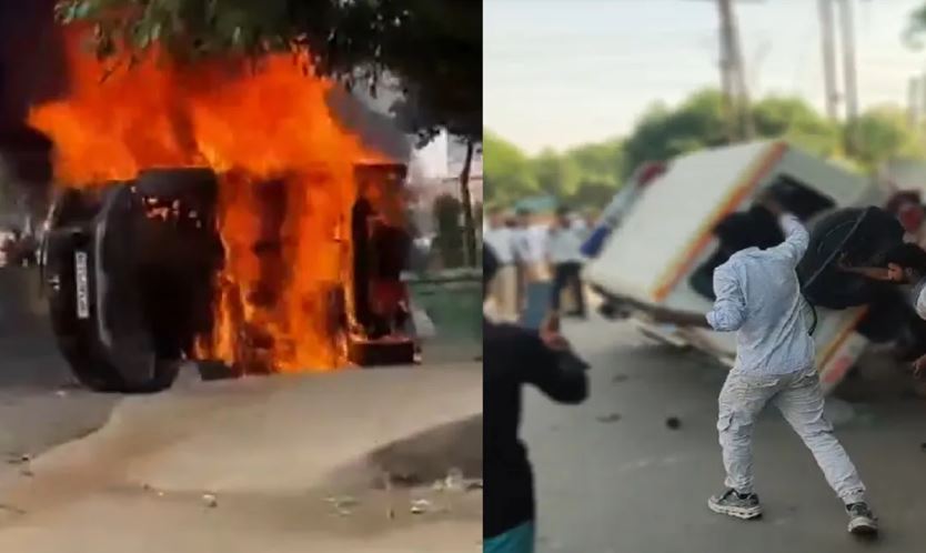 नोएडा के फेज-2 इलाके में प्रदर्शनकारी हिंसक हो गए, जिसके बाद उन्होंने पुलिस के वाहनों समेत कई गाड़ियों में आग लगा दी और भारी पथराव किया।
